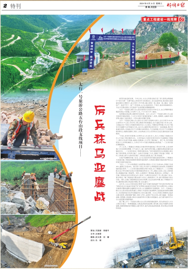 搶抓建設(shè)黃金期,刷新項目進(jìn)度條。近日,在太行一號旅游公路五臺山段支線項目建設(shè)現(xiàn)場,工人們正有條不紊地加緊施工,挖機(jī)、裝載機(jī)、運(yùn)輸車來回穿梭,建設(shè)工地呈現(xiàn)出一片熱火朝天的繁忙景象。