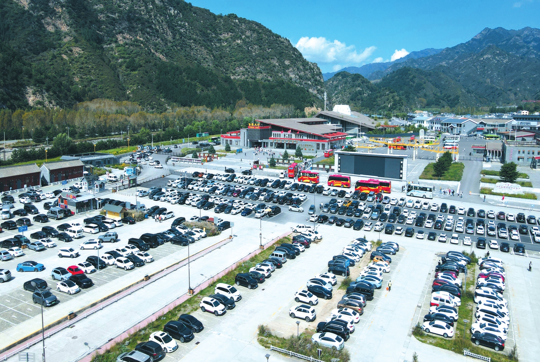 “南門(mén)是游客進(jìn)出的主要通道,承擔(dān)著70%以上的客流壓力,每到旺季,原有停車場(chǎng)車位相對(duì)緊張?!本皡^(qū)游客服務(wù)中心辦公室副主任劉洋指著南門(mén)外一片開(kāi)闊的停車場(chǎng)介紹道。2024年,景區(qū)精準(zhǔn)發(fā)力擴(kuò)容停車資源,在南門(mén)外新建兩座大型應(yīng)急停車場(chǎng),加上游客服務(wù)中心原有停車場(chǎng),共計(jì)車位1萬(wàn)余個(gè),從根本上緩解了停車壓力。剛停好車的太原游客王女士坦言:“以前來(lái)這兒找停車位得費(fèi)老半天勁,這次全程順順利利,帶著老人孩子也不費(fèi)勁,體驗(yàn)感好了不止一點(diǎn)?!?/p>