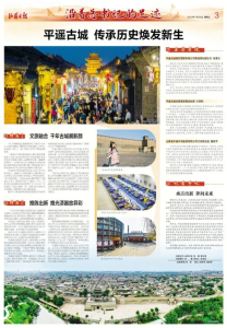 兩年來(lái),晉中市和平遙縣牢記領(lǐng)袖囑托,全力推動(dòng)“遺產(chǎn)保護(hù)首善地、國(guó)際旅游目的地、晉商文化窗口地、特色產(chǎn)品展示地”建設(shè),在保護(hù)與傳承中交出了嶄新的答卷。