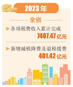 本報訊(記者任志霞)近日,記者從全省稅務(wù)工作會上獲悉,2023年全省各項稅費(fèi)收入累計完成7407.47億元,全省新增減稅降費(fèi)及退稅緩費(fèi)401.42億元。
