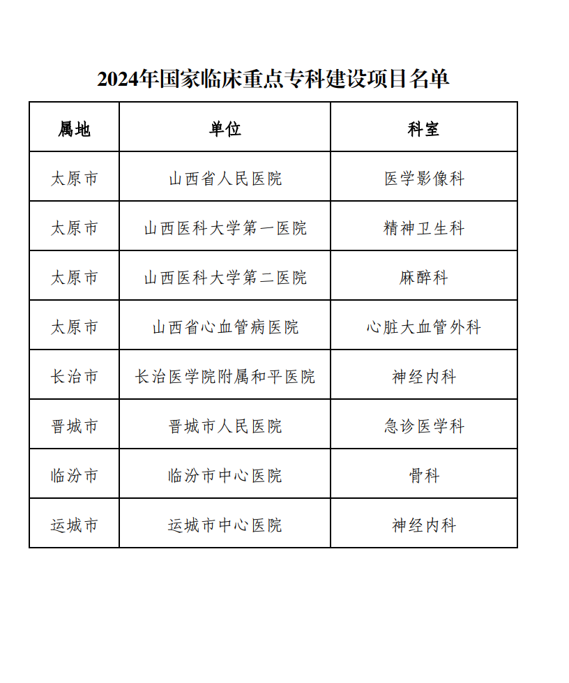 黃河新聞網(wǎng)訊(記者孫宇佳)日前,山西省衛(wèi)健委對擬確定為2024年國家臨床重點(diǎn)專科建設(shè)項(xiàng)目的醫(yī)院及??泼麊芜M(jìn)行了公示。據(jù)悉,本次名單根據(jù)《山西省衛(wèi)生健康委辦公室關(guān)于印發(fā)〈“十四五”期間山西省臨床重點(diǎn)??平ㄔO(shè)實(shí)施方案〉的通知》和國家臨床重點(diǎn)??平ㄔO(shè)項(xiàng)目申報(bào)工作總體安排,在各市衛(wèi)生健康委和委直屬有關(guān)醫(yī)院積極申報(bào)后,經(jīng)山西省衛(wèi)生健康委組織省醫(yī)療服務(wù)評價(jià)中心和省級專家進(jìn)行評審后產(chǎn)生。