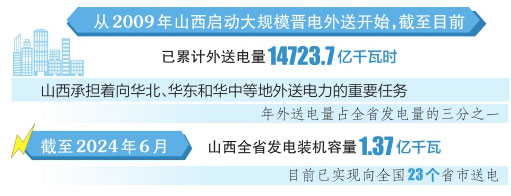 記者了解到,山西承擔著向華北、華東和華中等地外送電力的重要任務,年外送電量占全省發(fā)電量的三分之一。截至2024年6月,山西全省發(fā)電裝機容量1.37億千瓦,電力外送基礎不斷夯實,目前山西已實現(xiàn)向全國23個省市送電。