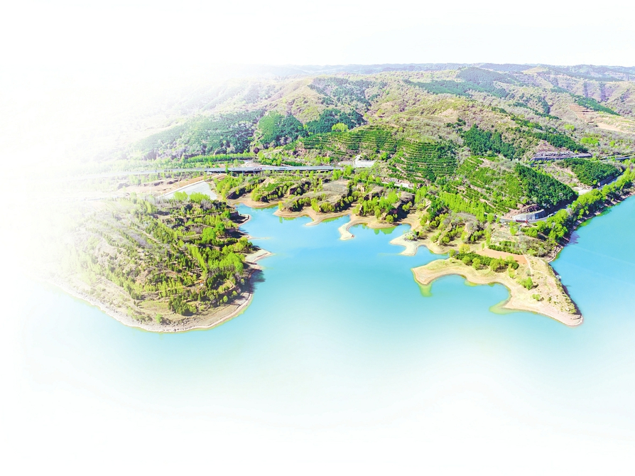 左權縣左權湖與湖岸線、樹木相互映襯,繪就一幅美麗的生態(tài)畫卷。張文軍攝