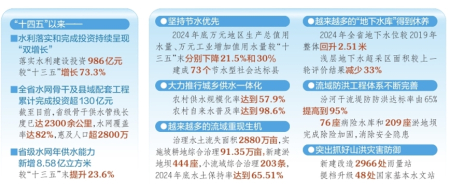 “十四五”以來,我省全力開展母親河復(fù)蘇、幸福河湖建設(shè)行動,在全國率先公布縣級以上母親河名錄,重點(diǎn)打造4條國家級、104條省級幸福河湖,優(yōu)先把各市縣母親河建設(shè)成為幸福河;“一泓清水入黃河”6大類40項(xiàng)水利工程逐步建成達(dá)效,越來越多的河流恢復(fù)了生命。全省治理水土流失面積2880萬畝,實(shí)施坡耕地綜合治理91.35萬畝、新建淤地壩444座、小流域綜合治理203條,2024年底水土保持率達(dá)到65.51%,較“十三五”末提高3.13個百分點(diǎn),越來越多的流域重現(xiàn)了生機(jī)。2024年全省地下水位較2019年整體回升2.51米,淺層地下水超采區(qū)面積較上一輪評價結(jié)果減少33%,越來越多的“地下水庫”得到了休養(yǎng)。