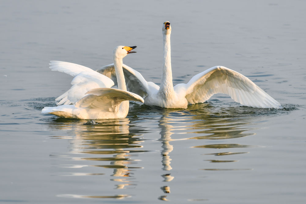 在山西平陸黃河濕地保護(hù)區(qū),一批批來自西伯利亞的野生大天鵝陸續(xù)飛抵,開始越冬。據(jù)悉,自10月底起,大天鵝已開始分批抵達(dá)黃河濕地,進(jìn)入12月后數(shù)量明顯增加,目前該區(qū)域觀測到的越冬天鵝已超5000只,到明年1、2月份可達(dá)上萬只。它們悠然自得的身影,為黃河岸畔增添了一道靈動的風(fēng)景線。 山西省平陸縣黃河濕地位于山西與河南兩省交界處,總面積6000多公頃。這里氣候溫和、食物豐富,非常適宜大天鵝越冬。近年來,平陸縣持續(xù)加大對黃河濕地的生態(tài)修復(fù)與保護(hù)力度,生態(tài)環(huán)境不斷改善。
