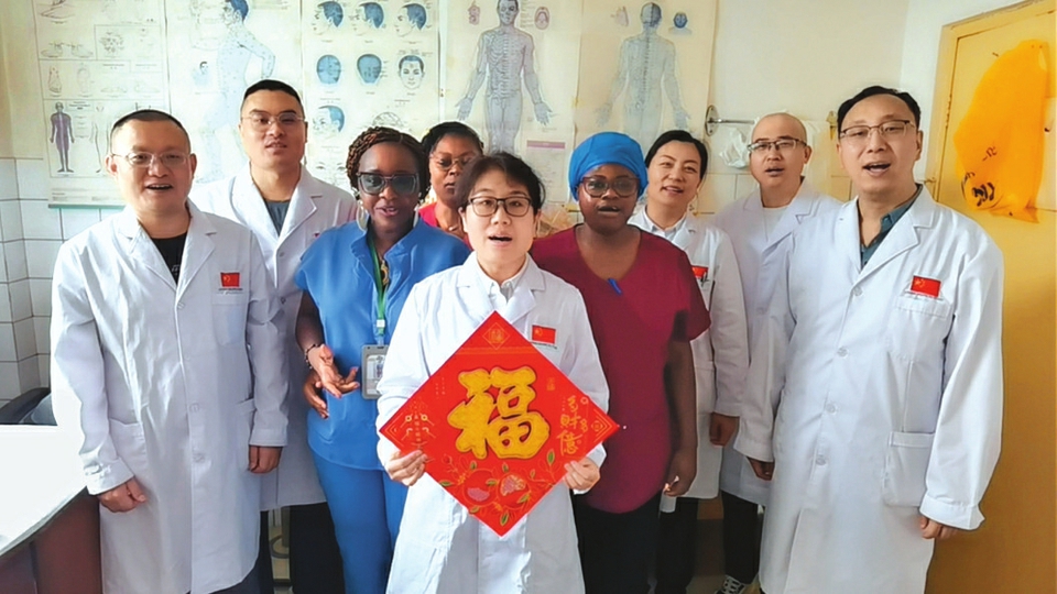 中國(山西)第25批援喀麥隆醫(yī)療隊隊員與受援國醫(yī)院同事共慶中國新春佳節(jié)。張麗利攝