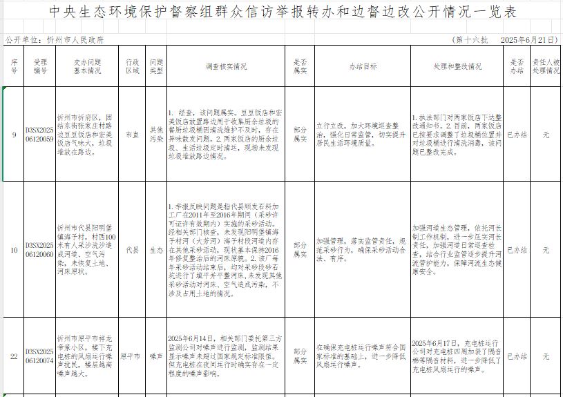 中央生態(tài)環(huán)境保護(hù)督察組群眾信訪舉報(bào)轉(zhuǎn)辦和邊督邊改公開情況一覽表(第十六批)
