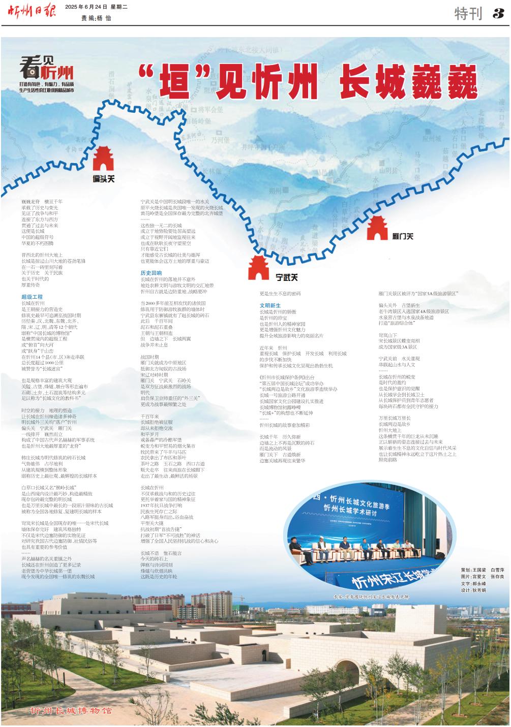 巍巍龍脊 橫亙千年 承載了歷史與榮光 見證了戰(zhàn)爭與和平 連接了東方與西方 貫通了過去與未來 這便是長城 中國的超級符號 華夏的不朽圖騰 晉西北的忻州大地上 長城是掠過山川大地的蒼勁筆鋒 在一石一磚里刻寫著 關(guān)于歷史 關(guān)于民族 也關(guān)于時代的 厚重傳奇 超級工程 長城在忻州 是王朝接力的營造史 修筑史最早可追溯至戰(zhàn)國時期 歷經(jīng)秦、漢、北魏、東魏、北齊、隋、宋、遼、明、清等12個朝代 堪稱“中國長城的博物館” 是橫貫境內(nèi)的超級工程 或“俯首”向大河 或“躍身”于山巒 在忻州14個縣(市、區(qū))奔走串聯(lián) 總長度超過1000公里 被贊譽為“長城迷宮” 也是規(guī)格豐富的建筑大觀 關(guān)隘、古堡、烽燧、墩臺等形態(tài)遍布 石砌、土夯、土石混筑等結(jié)構(gòu)多元 足以稱為“長城文化的教科書” 時空的接力 地理的塑造 讓長城在忻州締造諸多神奇 明長城外三關(guān)均“落戶”忻州 偏頭關(guān) 寧武關(guān) 雁門關(guān) 一線排開 巍然而立 構(gòu)成了中國古代聲名赫赫的軍事系統(tǒng) 也是忻州大地最厚重的“龍脊” 韓莊長城為明代修筑的磚石長城 氣勢雄偉 占盡地利 從建筑規(guī)模到整體形象 堪稱歷史上最壯觀、最輝煌的長城樣本 白草口長城又名“猴嶺長城” 是山西境內(nèi)設(shè)計最巧妙、構(gòu)造最精致 現(xiàn)存包磚最完整的明長城 也是萬里長城中最長的一段原汁原味的古長城 被稱為全國各地修復(fù)、復(fù)建明長城的樣本 岢嵐宋長城是全國現(xiàn)存的唯一一處宋代長城 墻體保存完好 建筑風(fēng)格獨特 不僅是宋代邊塞防御的實物見證 對研究我國古代邊塞防御、社情民俗等 也具有重要的參考價值 …… 聲名赫赫的名關(guān)重鎮(zhèn)之外 長城還在忻州創(chuàng)造了更多記錄 老營堡為中華長城第一堡 現(xiàn)今發(fā)現(xiàn)的全國唯一修筑的東魏長城 寧武關(guān)是中國明長城段唯一的水關(guān) 原平火燒長城是我國唯一發(fā)現(xiàn)的火燒長城 黃花嶺堡是全國保存最為完整的北齊城堡 …… 這些獨一無二的長城 或立于地勢險要處居高望遠(yuǎn) 或立于視野開闊地監(jiān)視往來 也或在耿耿長夜守望星空 只有靠近它們 才能感受古長城的壯美與雄渾 也更能體會這方土地的厚重與豪邁 歷史回響 長城在忻州的落地并不意外 地處農(nóng)耕文明與游牧文明的交匯地帶 忻州自古就是邊防重地、戰(zhàn)略要沖 當(dāng)2000多年前互相攻伐的諸侯國 修筑用于防御游牧族群的墻體時 寧武縣東寨鎮(zhèn)就有了趙長城的磚石 此后 千百年間 泥石和泥石重疊 王朝與王朝相連 但 邊墻之下 長城兩翼 戰(zhàn)爭并未止息 戰(zhàn)國時期 雁門關(guān)就成為中原地區(qū) 抵御北方匈奴的古戰(zhàn)場 宋遼對峙時期 雁門關(guān) 寧武關(guān) 石嶺關(guān) 是雙方征戰(zhàn)最激烈的戰(zhàn)場 明代 肩負(fù)保衛(wèi)京師重任的“外三關(guān)” 更成為戰(zhàn)事最頻繁之處 千百年來 長城拒絕被征服 卻從未拒絕交流 和平歲月 戒備森嚴(yán)的冷酷軍堡 蛻變?yōu)楹推劫Q(mào)易的煙火集市 牧民帶來了牛羊與馬匹 農(nóng)民拿出了布匹和茶葉 茶葉之路 玉石之路 西口古道 販夫走卒往 來商旅在長城腳下 走出了最生動、最鮮活的場景 長城在忻州 不僅承載戰(zhàn)與和的歷史過往 更托舉著家與國的精神象征 1937年抗日戰(zhàn)爭打響 民族生死存亡之際 八路軍挺身而出,浴血奮戰(zhàn) 平型關(guān)大捷抗 戰(zhàn)初期“首戰(zhàn)告捷” 打破了日軍“不可戰(zhàn)勝”的神話 增強(qiáng)了全國人民堅持抗戰(zhàn)的信心和決心 長城不語 惟石能言 今天的磚石上 彈痕與詩詞同刻 烽燧與炊煙共映 這既是歷史的年輪 更是生生不息的密碼 文明新生 長城是忻州的驕傲 是忻州的珍寶 也是忻州人的精神家園 更是增強(qiáng)忻州文化魅力 提升全域旅游影響力的亮麗名片 近年來 忻州 重視長城 保護(hù)長城 開發(fā)長城 利用長城的步伐不斷加快 保護(hù)和傳承長城文化呈現(xiàn)出勃勃生機(jī) 《忻州市長城保護(hù)條例》出臺 “第五屆中國長城論壇”成功舉辦 “長城兩邊是故鄉(xiāng)”文化旅游季連續(xù)舉辦 長城一號旅游公路開通 長城國家文化公園建設(shè)扎實推進(jìn) 長城博物館初露崢嶸 “長城+”的構(gòu)想也不斷延伸 …… 忻州長城的故事愈加精彩 長城千年 歷久彌新 邊墻之上不再是沉默的磚石 而是流動的風(fēng)景 雁門關(guān)下 古道煥新 邊塞關(guān)城再現(xiàn)往來繁華 雁門關(guān)景區(qū)被評為“國家5A級旅游景區(qū)” 偏頭關(guān)外 古堡新生 老牛灣景區(qū)入選國家4A級旅游景區(qū) 水泉營古堡與水泉戰(zhàn)備地道 打造“旅游綜合體” 岢嵐山下 宋長城景區(qū)蝶變亮相 成為國家級3A景區(qū) 寧武關(guān)前 水關(guān)重現(xiàn) 串聯(lián)起山水與人文 …… 長城在忻州的蛻變 是時代的邀約 也是保護(hù)意識的覺醒 從長城學(xué)會到長城衛(wèi)士 從長城保護(hù)員到青年志愿者 每塊磚石都有全民守護(hù)的接力 萬里長城萬里長 長城兩邊是故鄉(xiāng) 忻州大地上 這條橫貫千年的巨龍從未沉睡 正以嶄新的姿態(tài)連接過去與未來 展示著生生不息的文化自信與時代風(fēng)采 也讓長城精神永遠(yuǎn)屹立于這片熱土之上 照亮前路 策劃:王國