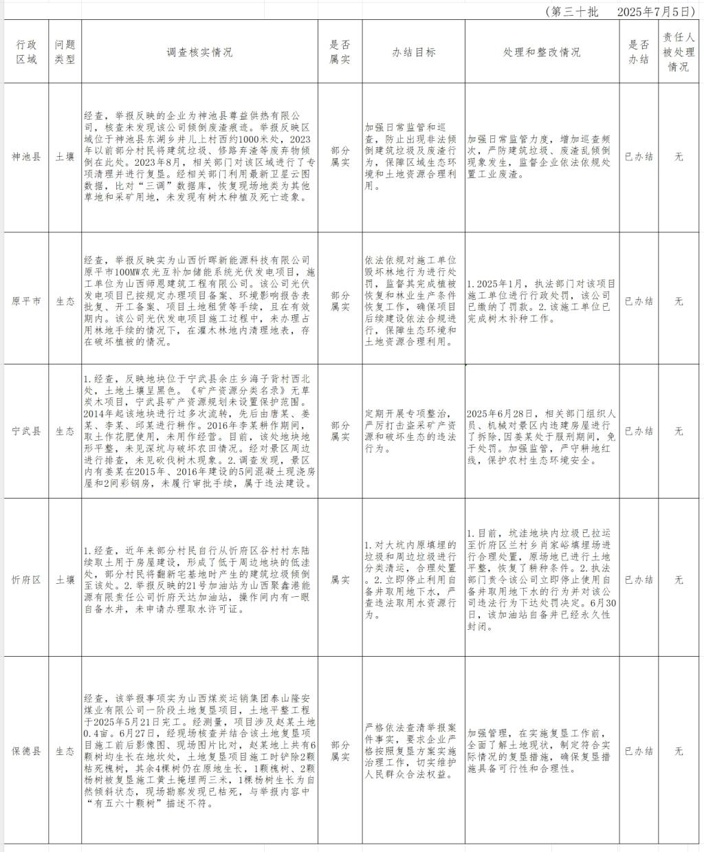 中央生態(tài)環(huán)境保護督察組群眾信訪舉報轉(zhuǎn)辦和邊督邊改公開情況一覽表(第三十批)