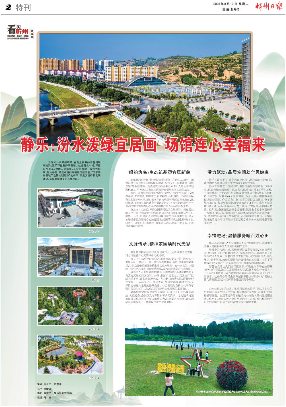 汾河如一條翠綠綢帶,在黃土高原的溝壑間蜿蜒流淌,溫柔環(huán)抱著靜樂縣城。這座晉北小城,深植山水之基,揮灑人文濃墨,正全力繪就一幅特色鮮明、魅力彰顯、品質(zhì)卓越的幸福城市新畫卷?!皣?guó)家園林縣城”“全國(guó)文明城市”的殊榮,正是其踐行新發(fā)展理念、實(shí)現(xiàn)美麗蝶變的光輝見證。