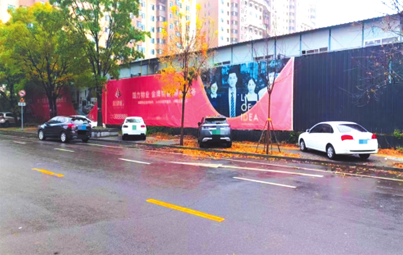 忻府區(qū)福慧路國力新城三期東側(cè)車輛占用人行通道。