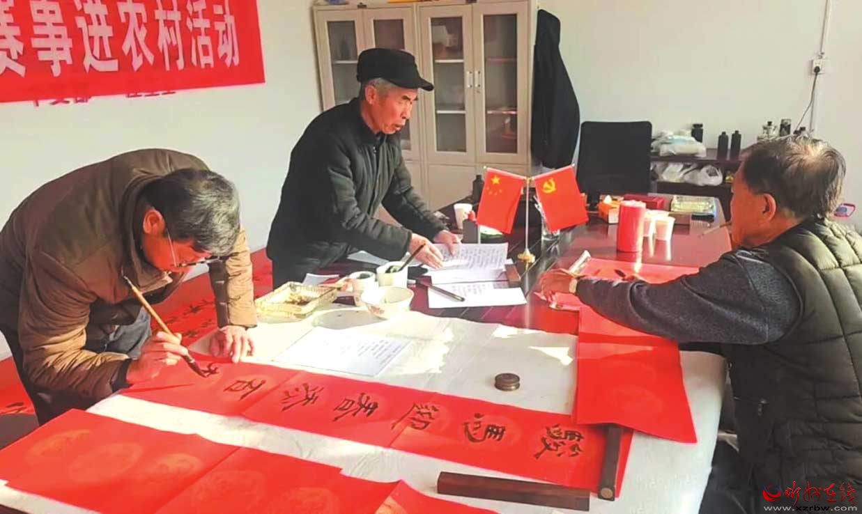 “文化進村·春聯送福”新年寫對聯活動現場。