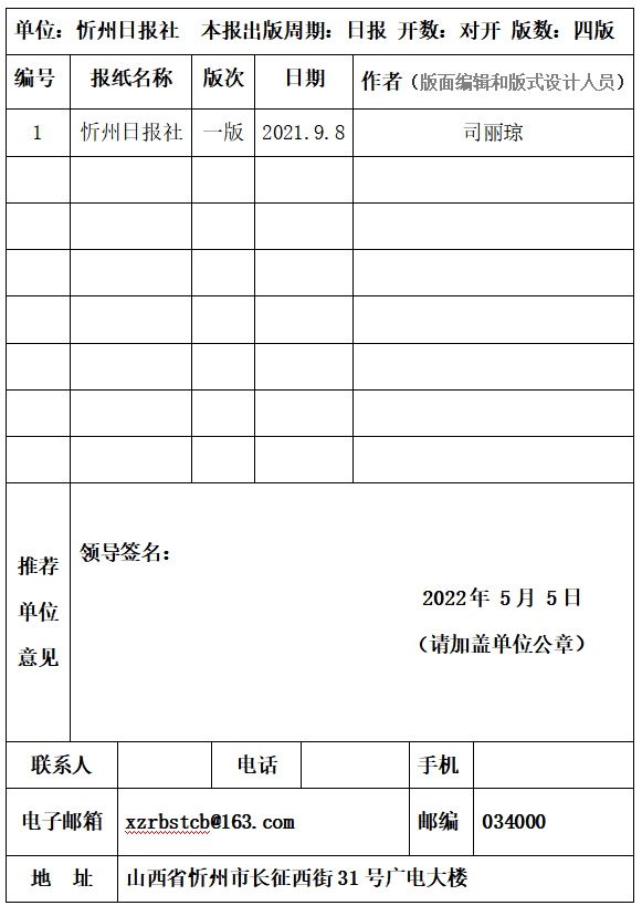 地址:山西省忻州市長(zhǎng)征西街31號(hào) 熱線:0350-3336505 電子郵箱:sxxzrbw@163.com