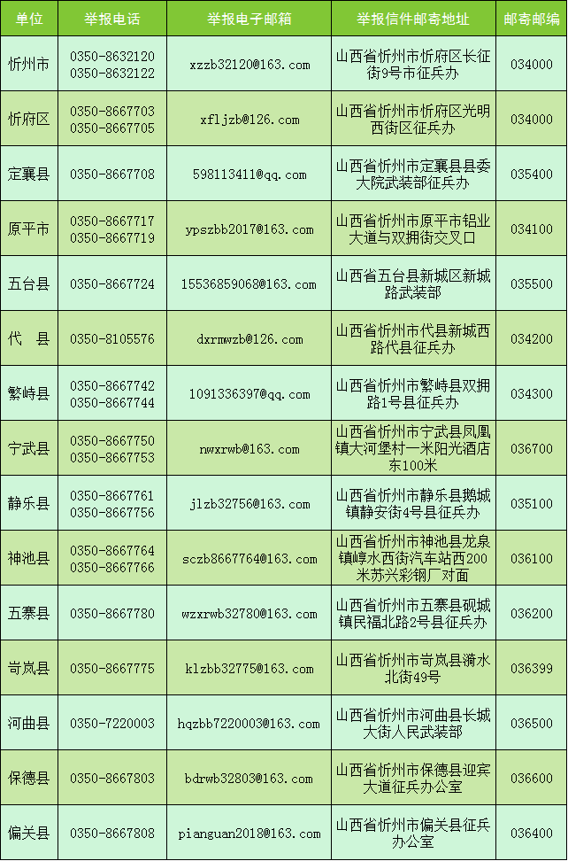 為認真貫徹落實上級關(guān)于廉潔征兵的政策規(guī)定,維護廣大應(yīng)征青年的合法權(quán)益,嚴明征兵紀律,拓寬監(jiān)督渠道,營造風清氣正的征兵環(huán)境,現(xiàn)將2025年忻州市級廉潔征兵監(jiān)督員和市縣兩級舉報電話、郵箱等信息予以公示,歡迎全社會對征兵工作進行監(jiān)督。