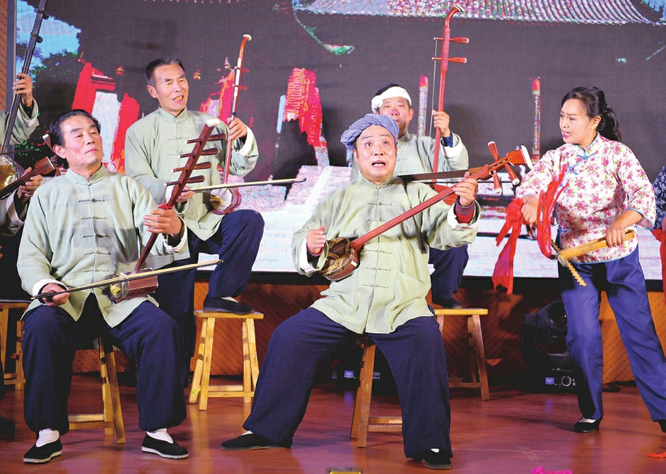 1月10日晚,運城市稷山縣的民間藝人在表演稷山老調(diào)《敬獻(xiàn)稷王》。稷山老調(diào),又叫稷山古琴書,是一種具有地方特色的曲藝唱腔,其內(nèi)容豐富,曲調(diào)悠揚,唱腔激昂,通俗易懂,至今已有二百多年歷史。稷山老調(diào)表演者主要由當(dāng)?shù)孛に嚾私M成,演員舉手投足、說唱間散發(fā)著濃郁的鄉(xiāng)土氣息,配合四胡、二胡、笛子、三弦、小揚琴、鼓、快板等樂器的彈奏和擊打,給人以粗獷高亢、詼諧幽默的感覺,深受稷山乃至?xí)x南民眾喜聞樂見。稷山老調(diào)流行于稷山、新絳、河津、鄉(xiāng)寧等地,多在登高節(jié)、廟會祭祀和祈?;顒又醒莩觯磉_(dá)人們祈求風(fēng)調(diào)雨順、五谷豐登、家庭和睦的美好愿望。