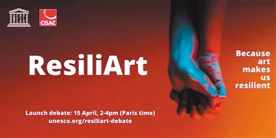 聯(lián)合國教科文組織“漫談堅韌藝術”線上討論的宣傳海報。此次討論的主題是“藝術家和創(chuàng)造力如何戰(zhàn)勝危機”。