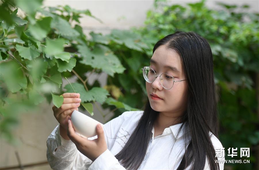 8月24日,屠金歌在戶外尋找適合制作木葉盞的樹葉。新華社發(fā)(趙子碩攝)