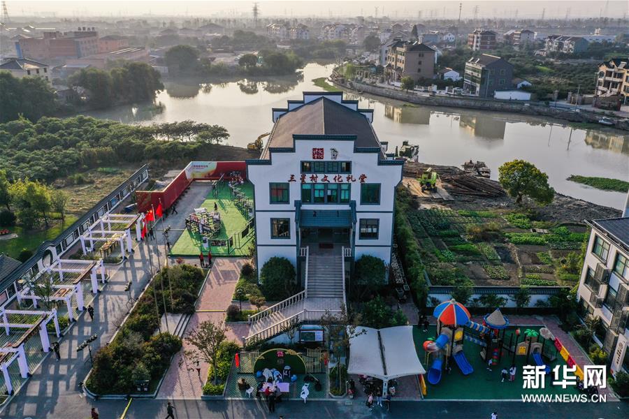 11月7日,在杭州市余杭區(qū)塘棲鎮(zhèn)三星村文化禮堂前,村民在展示傳統(tǒng)技藝“翻絲綿”(無人機照片)。當日,浙江省杭州市余杭區(qū)農(nóng)村文化禮堂“百村千場”聯(lián)盟走親在塘棲鎮(zhèn)三星村文化禮堂正式啟動?;顒蝇F(xiàn)場組織了米塑、滾燈、鰲魚燈、高蹺、掮爐子等余杭非遺技藝走親展示以及塘棲鎮(zhèn)禮堂聯(lián)盟原創(chuàng)節(jié)目展演。 從2020年3月開始,浙江省杭州市余杭區(qū)塘棲鎮(zhèn)以“小康路上我們一起曬幸?!睘橹黝},啟動美麗鄉(xiāng)村禮堂文化節(jié)活動,開展“幸福接力賽”、文化“云”講課等一系列基層文化活動。塘棲鎮(zhèn)還創(chuàng)新推進了“禮堂聯(lián)盟”結(jié)對互促工作,與區(qū)級文化團隊結(jié)對共建,使鄉(xiāng)村文化禮堂“活”起來,全面提升鄉(xiāng)村百姓的幸福感。新華社記者 徐昱 攝