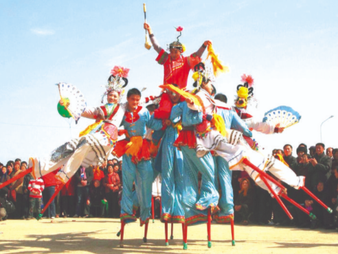高蹺俗稱“拐子”,因舞蹈時(shí)腳踩木蹺而得名。木蹺高度不一,有的低至一尺,有的高達(dá)一丈五尺,不過一般多為四五尺。高蹺的表演形式有單拐、雙拐,亦有三人四拐,其中舞者多扮演某個(gè)古代神話或歷史故事中的人物,服飾多模仿戲曲行頭,常用道具有扇子、手絹、木棍、刀槍等。高蹺有文高蹺、武高蹺之分,文高蹺是用弦樂或吹鼓樂伴奏,邊走邊舞,變換著各種隊(duì)形;武高蹺則用打擊樂伴奏,以表演特技為主。(小編綜合整理)