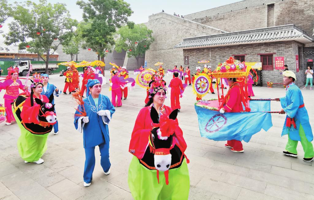 忻州“跑驢”俗稱“兜毛驢”,是民間舞蹈之一。伴奏以歡快、喜慶的八音為主,或可現(xiàn)場(chǎng)用嗩吶、小鼓、大鈸和小鈸等伴奏?!芭荏H”表演多以一男一女為一組(也有女扮男裝的),表演節(jié)目有“夫妻探親”“回娘家”“趕集路上”等。其中以小媳婦兒回娘家和表現(xiàn)農(nóng)村老漢和農(nóng)村老大娘的故事情節(jié)較為普遍。表演時(shí)小媳婦“騎驢”磨磨蹭蹭、小伙子趕“驢”風(fēng)情萬(wàn)種,運(yùn)用舞蹈動(dòng)作夸張地演繹驢的倔強(qiáng)和趕驢者的執(zhí)著?!芭荏H”的舞步很多,有平閃步、上山步、下山步、小跑步、驚驢步、后踢步、過(guò)河步等。表演形式有踩四腳、卷白菜、龍盤柱等,表演者即興使用,不受限制。演員相互配合,表演動(dòng)作夸張,“騎驢上路”“騎驢下坡”“騎驢過(guò)河”“失蹄臥水”“毛驢抖水”“驢失前蹄”“毛驢跳躍”等舞姿,生動(dòng)活潑、詼諧幽默、趣味無(wú)窮,備受歡迎。(市文化館供稿)