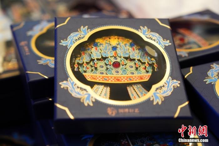 資料圖:中國國家博物館推出的孝端皇后鳳冠冰箱貼。中新社記者 趙文宇 攝