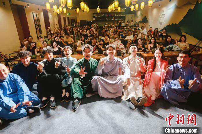 “之前只在線上聽過傳統(tǒng)相聲,來了才知道相聲還能這么玩,我錄制了視頻發(fā)在朋友圈,好幾個朋友都說要來打卡?!薄癦世代”張倩是這家相聲館的“老粉”,每周從不缺席?!拔疫€‘安利’給了丈夫和孩子,我們經(jīng)常一家三口來聽相聲,孩子現(xiàn)在都能說兩句貫口了?!睆堎徽f。