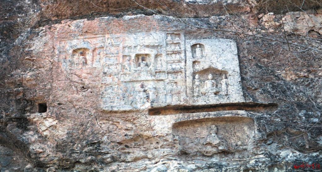 七巖山摩崖造像位于定襄縣南王鄉(xiāng)黃場峪村東南約一千米處,分布于溝兩側(cè)崖壁上?,F(xiàn)存東魏、北齊和唐代摩崖造像及石窟共9處,其中石窟5處,摩崖造像4處,大小佛教造像1200余尊,造像總面積約27平方米。據(jù)《定襄金石考》記載:最早的造像及碑記為北魏神龜二年(519),現(xiàn)無存。現(xiàn)存最早的摩崖造像及題記為東魏天平三年(536),由僧人慧端等刊刻。另有北齊天保七年(556)廣武令趙郎奴等刊刻的造像及題記,以及唐先天二年(713)造像及題記。石窟主要為佛殿窟和禪窟,造像題材包括七佛、千佛和涅槃像等。