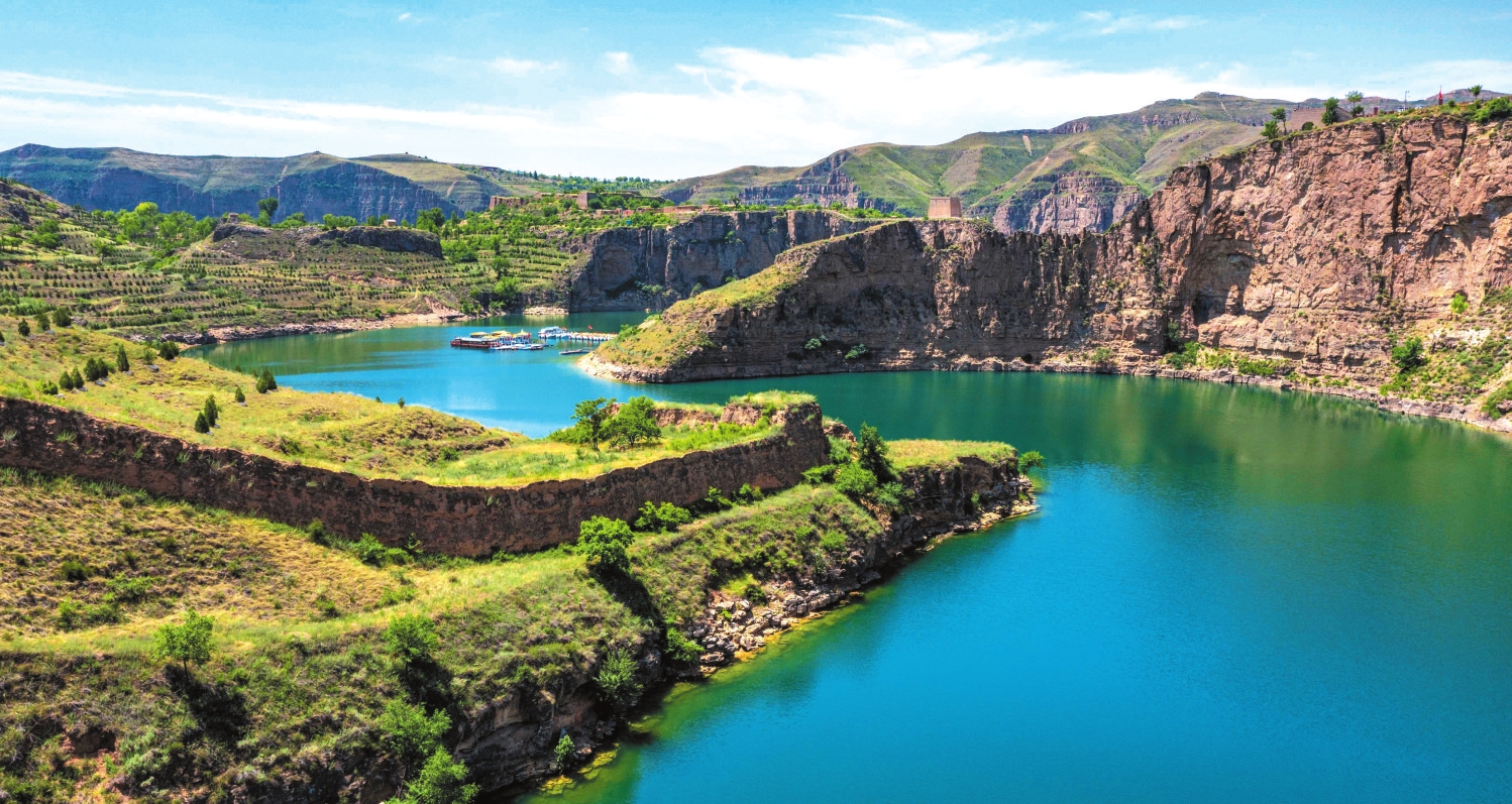 老牛灣 盧鵬宇攝 從磧口繼續(xù)下行,走過石樓灣、乾坤灣,黃河依舊清澈不染。站在山上看下去,深深峽谷里,黃河宛若一條綠色緞帶,溫柔盤旋于峽谷中。歷史上,黃河奔騰咆哮,穿高原,裂峽谷,卷泥走石,何其壯也!而今變?yōu)橐缓忧辶鳎袢缤粋€(gè)小姑娘,這情景,讓人感覺有幾分夢幻。 先前我曾到過壺口兩次,一次在春季,一次在秋季。春季水少,秋季水多,但兩次所見都是黃色瀑布。這一次來,壺口的黃河也已變綠,那激蕩萬年聞名世界的黃色瀑布,已然變換了顏色,雪浪堆疊,珠飛玉濺是另一番景致。太陽落山時(shí),站在黃河大橋上往下看,窄窄的龍漕里只有半漕水在緩緩流動,兩面裸露著堅(jiān)硬而又干凈的巖石河床。河水受擠壓的同時(shí),綠色也被濃縮,看上去比保德的還要綠,還要濃,濃得化不開。 從壺口到禹門口,沿途有不少觀景臺,下臨深谷,白浪翻卷,水聲響亮。黃河泛黃時(shí)候,觀景臺上只聞水聲轟鳴,看不出浪花。此時(shí)黃河清,白浪顯,成了新景。抵達(dá)禹門口,黃河也是綠的,游艇在河里開過,水面上劃出道道波紋,宛如鋪展著的巨幅油畫。