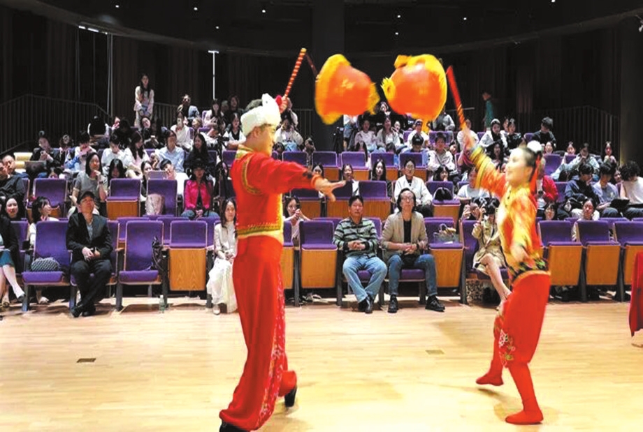 活動(dòng)現(xiàn)場,藝術(shù)團(tuán)團(tuán)長劉延鳳作為主講人,將黃河岸邊的千年回響娓娓道來。她從“戶有弦歌新治譜”的記載,講到被列入國家級非遺的榮光;從高亢遼闊、自由奔放的“山曲”風(fēng)味,解析融合三省民間音樂元素的“二人臺”小戲的獨(dú)特魅力。多位優(yōu)秀演員聯(lián)袂登臺,他們用精湛的技藝將這份厚重的文化遺產(chǎn)鮮活呈現(xiàn)。市級非遺代表性傳承人鄔光演唱的《放羊漢唱起爬山調(diào)》,一聲出口,仿佛將黃土高原的溝壑縱橫與黃河的奔騰不息盡數(shù)帶到現(xiàn)場;優(yōu)秀青年演員王佳、楊慧、鄔強(qiáng)等演繹的《河曲人愛把山曲唱》《打藍(lán)靛》《壓糕面》等多首河曲民歌二人臺的經(jīng)典曲目與劇目,展現(xiàn)了民間生活的喜怒哀樂,濃郁的鄉(xiāng)土氣息與真摯情感深深打動(dòng)了在場師生。