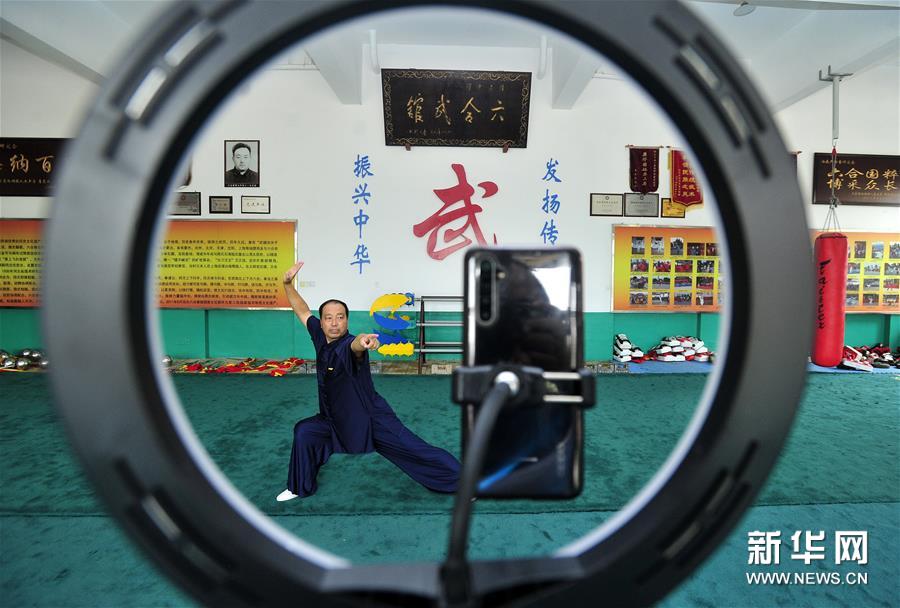 8月5日,石同鼎直播六合拳拳法。時(shí)值暑假,為減少聚集習(xí)武帶來的疫情風(fēng)險(xiǎn),同時(shí)豐富孩子們的暑期生活,六合拳第八代傳承人石同鼎在直播平臺(tái)開通了賬號,每天帶領(lǐng)學(xué)生進(jìn)行網(wǎng)絡(luò)直播教學(xué)演示,通過“云端”傳承非遺文化。 今年59歲的石同鼎是泊頭六合拳第八代傳人,他自幼跟隨父親習(xí)武。2001年父親離世后,石同鼎便承擔(dān)起傳承六合拳的重任。2002年石同鼎建起六合武館,開始教徒弟習(xí)武練拳。 作為傳統(tǒng)武術(shù)中長拳的一種,河北的泊頭六合拳有400余年歷史,被列入國家級非物質(zhì)文化遺產(chǎn)名錄。 “通過網(wǎng)上直播,更多的人可以了解六合拳、練習(xí)六合拳?!笔φf,他希望能把六合拳推向世界,傳得更遠(yuǎn)。新華社記者 牟宇 攝