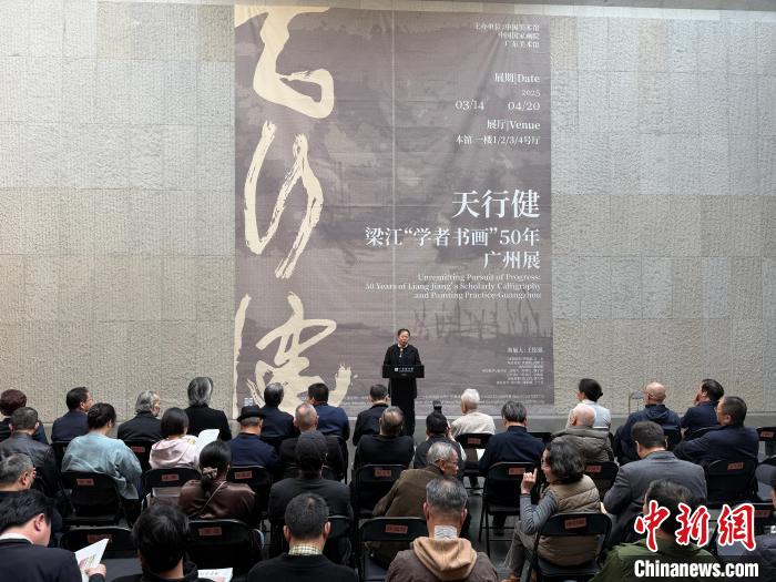 中新網(wǎng)廣州3月16日電 (記者 方偉彬)天行健——梁江“學者書畫”50年廣州展16日在廣東美術館開幕,活動由中國美術館、中國國家畫院、廣東美術館共同主辦。