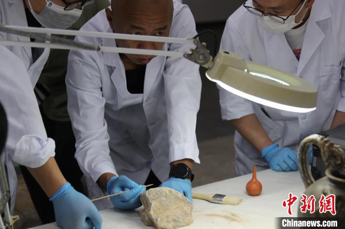 5月20日,河南洛陽(yáng),龍門石窟研究院的“文物醫(yī)生”對(duì)文物進(jìn)行修復(fù)。 中新社記者 闞力 攝