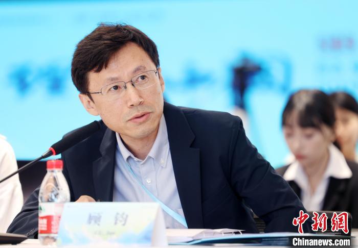 2025年6月6日,北京外國(guó)語(yǔ)大學(xué)教授顧鈞在會(huì)議現(xiàn)場(chǎng)分享觀點(diǎn)。 李國(guó)慶攝