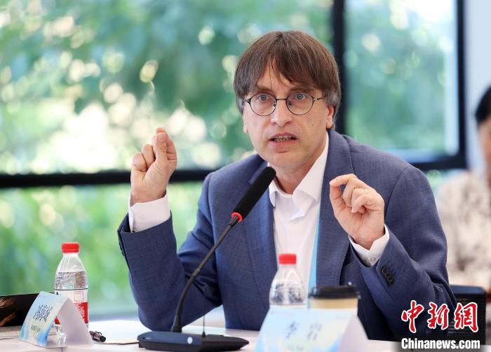 2025年6月6日,北馬其頓漢學(xué)知識(shí)中心教席學(xué)者馮海城在會(huì)議現(xiàn)場(chǎng)分享觀點(diǎn)。 李國(guó)慶攝