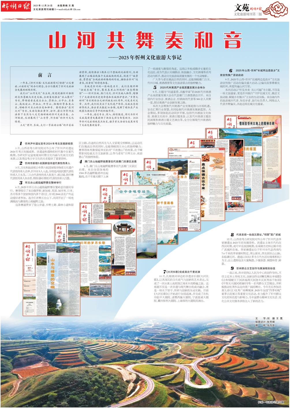 一年來,通過專業(yè)、深入、持續(xù)報道,周刊為忻州文旅高質(zhì)量發(fā)展提供了輿論支撐與智慧助力。2025年忻州文旅領(lǐng)域亮點紛呈,諸多重大活動與成果書寫了文旅發(fā)展新篇章。