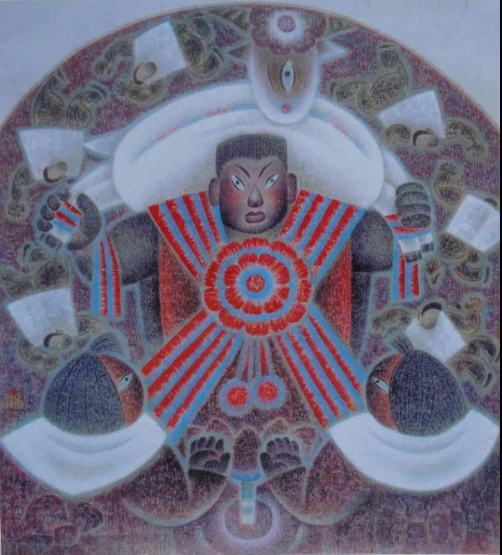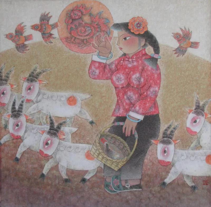 1973年開始自學(xué)美術(shù)并業(yè)余創(chuàng)作,專國(guó)畫兼及水粉、漫畫、剪紙。數(shù)十年來廣采博收,上溯遠(yuǎn)古巖畫、畫像磚、石、帛畫、洞窟壁畫、院體工筆以及民間剪紙、泥塑,面塑、年畫;橫向上油畫、版畫、裝飾、現(xiàn)代設(shè)計(jì)乃至西方藝術(shù)皆有涉獵吸收,融匯貫通,形成了一種既富傳統(tǒng)民族特色、鄉(xiāng)土味濃郁,又極具現(xiàn)代感的、自成一格的個(gè)人風(fēng)格。