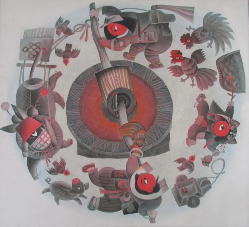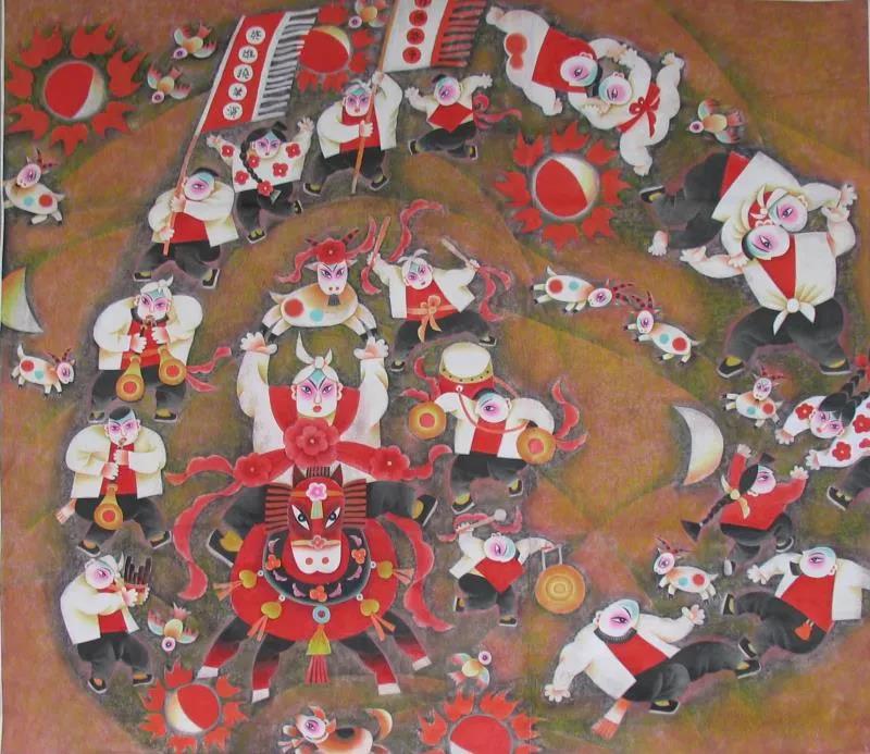 張俊的畫非常特別,整個(gè)展覽上再找不出這種風(fēng)格,有山西民間藝術(shù)的東西,表現(xiàn)了山西的風(fēng)情,用自己的藝術(shù)語(yǔ)言表現(xiàn)本地域的民情風(fēng)俗是別人比不了的。畫一批拿出去,在全國(guó)也是獨(dú)特的、能站住腳的。