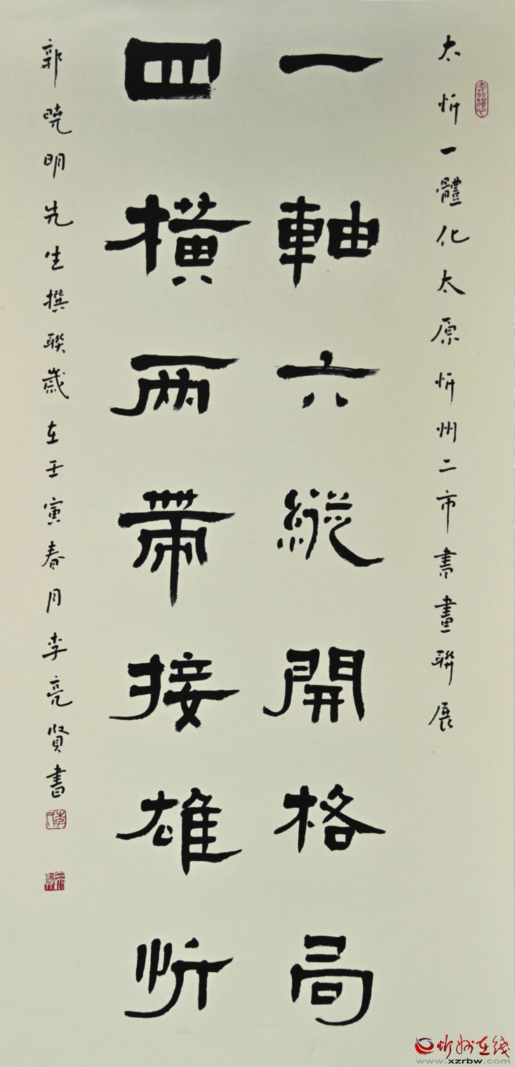 丹青吐彩,翰墨飄香。5月25目,由太原市委宣傳部、忻州市委宣傳部、山西省圖書館、太原市文聯(lián)、忻州市文聯(lián)共同主辦,太原市書法家協(xié)會(huì)、忻州市書法家協(xié)會(huì)承辦,助力“太忻經(jīng)濟(jì)一體化”發(fā)展——太原·忻州城市書法聯(lián)展在山西省圖書館拉開帷幕。