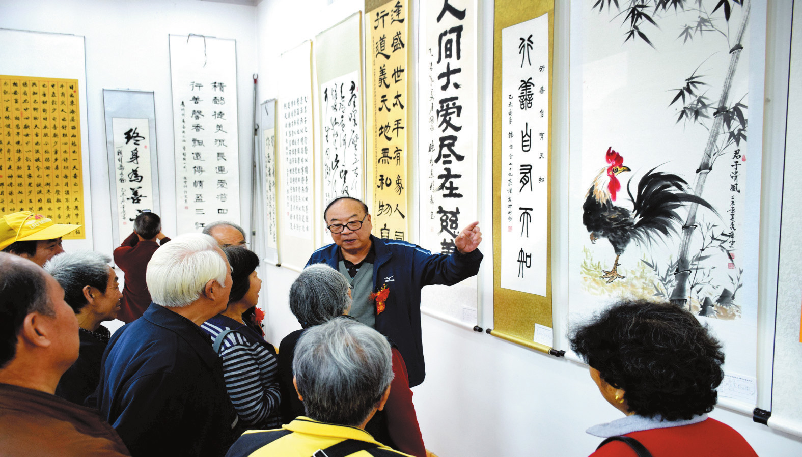 書畫展現(xiàn)場(chǎng),張啟明與書畫愛好者互動(dòng)