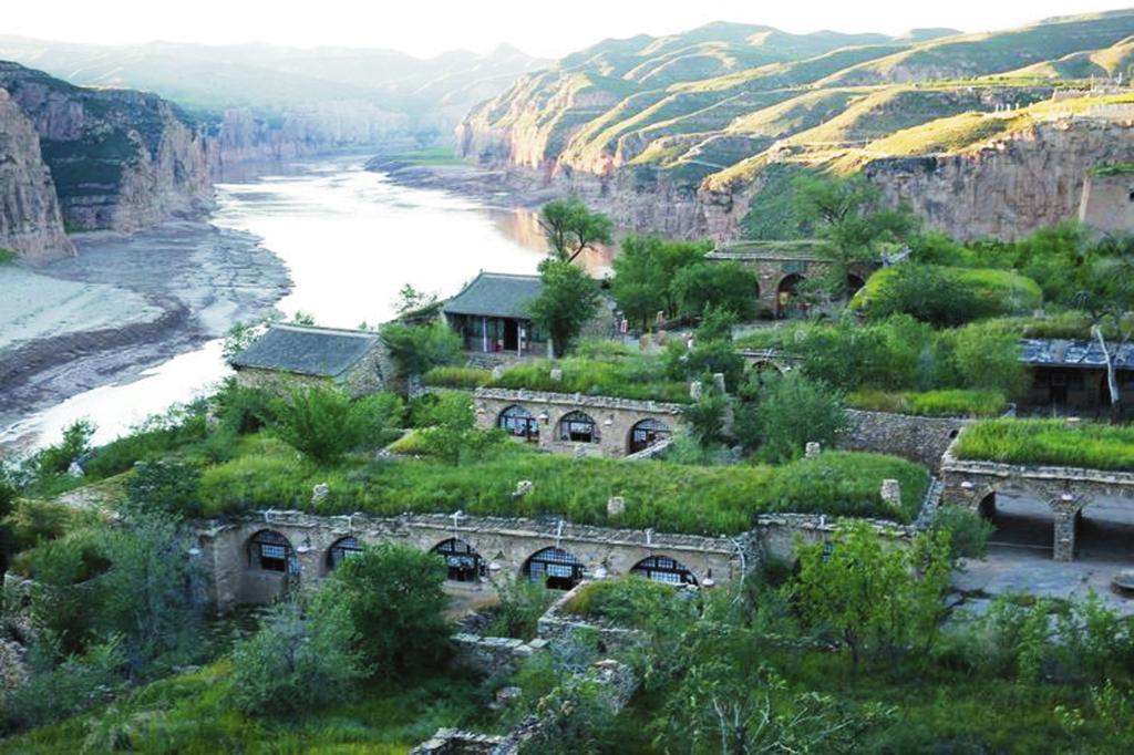 一眼望不到頭的長城從遠處山梁上綿延而來直達河邊??床灰娂ち鞅加浚牪灰婞S河濤聲,清清的河水在這里悠悠徜徉盤桓。如果說長城如父親般剛強有力,沉雄穩(wěn)健,黃河如母親般溫柔親切,寬懷博大,那寺溝恰如父母懷中幸福溫婉的小孩。寺溝慵懶地在河邊梳洗自己的容顏,連同身邊的長城倒影在粼粼的河水中,展現(xiàn)出難得的田園詩般的浪漫與柔情。山上長城夯土保持完整,有青銅群雕,旌旗獵獵,似將軍正在縱馬出巡。登墩臺四望,視野開闊,長城下人家炊煙裊裊,雞犬相聞。峽谷中游船往來,馬達轟鳴聲中幾只野鴨貼著河面飛向不遠的村子,飛向?qū)Π渡窖?。寺溝,一個把塞北風光與江南水鄉(xiāng)有機融為一體的地方。