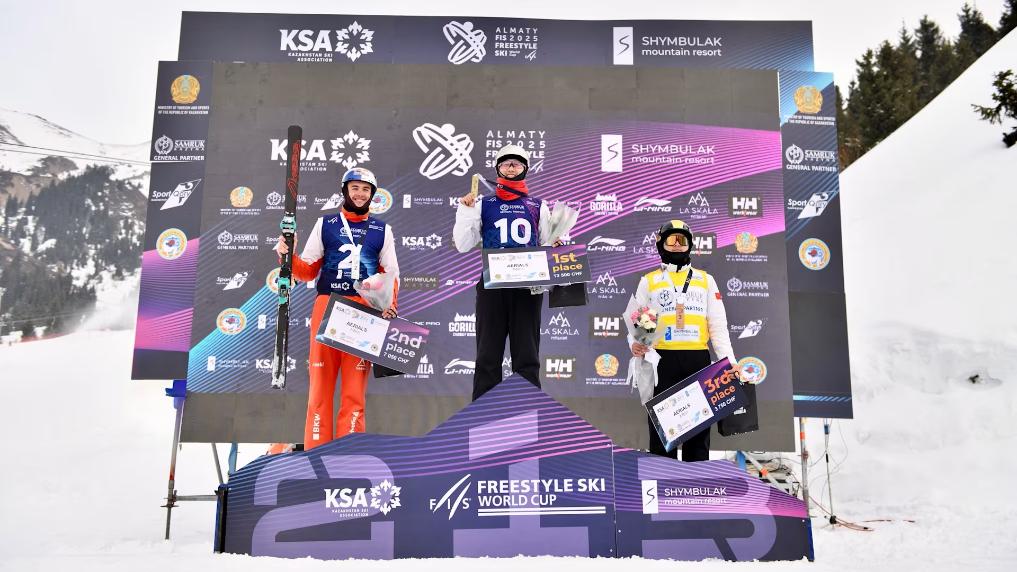 王心迪(中)、齊廣璞(右)在頒獎(jiǎng)儀式上。圖片來(lái)自國(guó)際雪聯(lián)官網(wǎng)