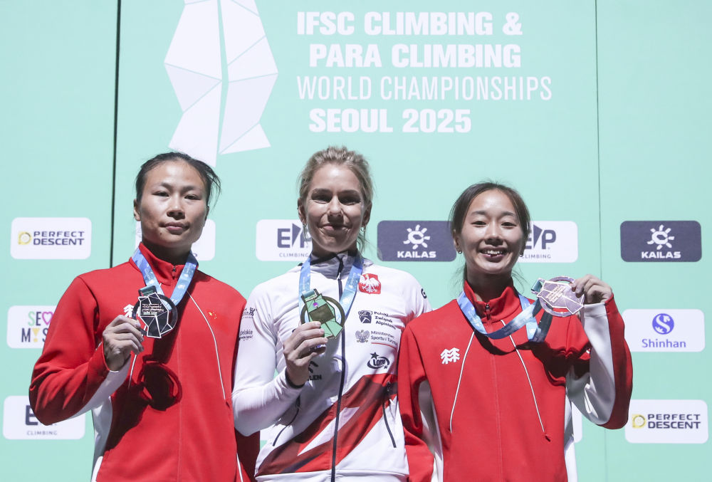 新華社首爾9月24日電(記者張粲、孫一然)在首爾舉行的2025年攀巖世錦賽24日見證世界紀(jì)錄誕生。奧運(yùn)冠軍、波蘭選手米羅斯瓦夫以6秒03的成績(jī)?cè)谂铀俣扰蕩r項(xiàng)目中奪冠,并將她自己在巴黎奧運(yùn)會(huì)上創(chuàng)造的該項(xiàng)目世界紀(jì)錄提高了0.03秒。中國(guó)隊(duì)選手鄧麗娟和周婭菲分獲銀牌和銅牌。