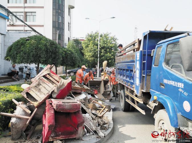 8月2日,忻州城區(qū)環(huán)衛(wèi)工人正在清運(yùn)垃圾。今年是第六屆創(chuàng)建全國文明城市評(píng)選決勝之年。在市創(chuàng)建全國文明城市總指揮部的統(tǒng)一協(xié)調(diào)指揮下,結(jié)合當(dāng)前正在開展的城區(qū)“兩下兩進(jìn)兩拆雙修一提升”專項(xiàng)整治行動(dòng),近日,各單位和居民小區(qū)清潔環(huán)境,助力創(chuàng)建全國文明城市。市市容環(huán)境衛(wèi)生管理處組織環(huán)衛(wèi)工人和車輛對(duì)指定堆放的垃圾進(jìn)行了集中清運(yùn)。 張劍雄 攝