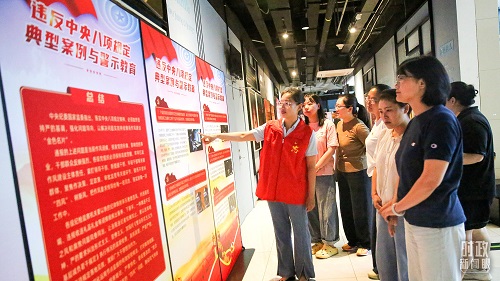 △2025年8月5日,江蘇南通,當?shù)厍嗄挈h員參觀深入貫徹中央八項規(guī)定精神學習教育專題展。(圖/視覺中國)