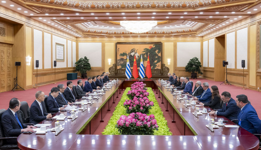 習(xí)近平指出,當(dāng)今世界正處于百年未有之大變局,國際形勢變亂交織,單邊霸凌愈演愈烈,中方支持烏拉圭接任“77國集團(tuán)和中國”輪值主席國,愿與烏方加強(qiáng)全球南方團(tuán)結(jié)協(xié)作,共同推進(jìn)平等有序的世界多極化、普惠包容的經(jīng)濟(jì)全球化,攜手并進(jìn)、共謀發(fā)展,為構(gòu)建人類命運(yùn)共同體作出更大貢獻(xiàn)。中方始終重視中拉關(guān)系,支持拉美和加勒比國家維護(hù)自身主權(quán)、安全、發(fā)展利益,支持烏拉圭接任拉美和加勒比國家共同體以及南方共同市場輪值主席國,愿同烏方和地區(qū)國家推動(dòng)共建中拉命運(yùn)共同體走深走實(shí)。