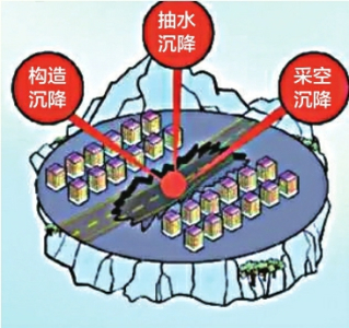 地面沉降是自然因素和人為因素綜合作用下形成的地面標高損失。自然因素包括構(gòu)造下沉、地震、火山活動、氣候變化、地應(yīng)力變化及土體自然固結(jié)等。人為因素主要包括開發(fā)利用地下流體資源(地下水、石油、天然氣等)、開采固體礦產(chǎn)、巖溶塌陷、軟土地區(qū)與工程建設(shè)有關(guān)的固結(jié)沉降等。