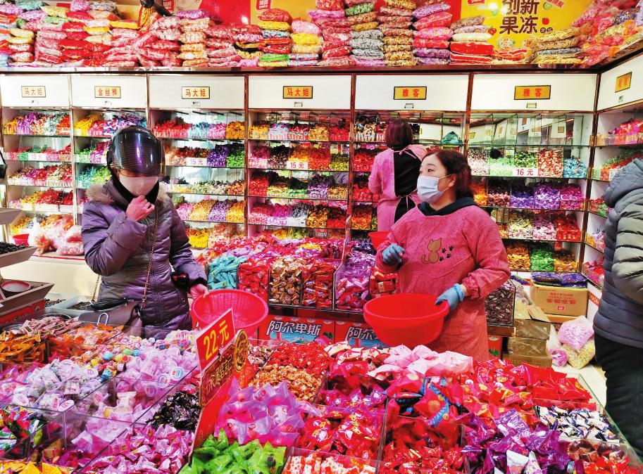 忻州各大商家提前籌劃、備足貨源,為市民歡度新春佳節(jié)做好了準(zhǔn)備。忻州小食品綜合批發(fā)市場是城區(qū)一家經(jīng)營多年的市場,總占地面積12000平米,分為四個(gè)區(qū)域,現(xiàn)有商戶152家,經(jīng)營有上萬種商品。1月10日,記者走進(jìn)忻州小食品綜合批發(fā)市場,看到前來購物的市民都戴著口罩、包裹嚴(yán)實(shí),盡管是三九寒冬,卻絲毫阻擋不住市民購年貨的熱情。