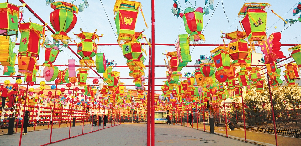 “自北宋建村以來,村里就有做花燈迎新年的傳統(tǒng)。相傳至今,上至80歲老人,下到20歲出頭青年,村里一多半人都有做花燈的手藝。”豆莊村村民霍書應邊指揮大家掛花燈邊說。