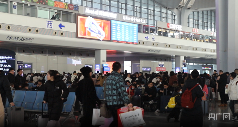 春運(yùn)期間南站候車廳里人頭攢動(dòng)(央廣網(wǎng)記者 郎麒 攝)