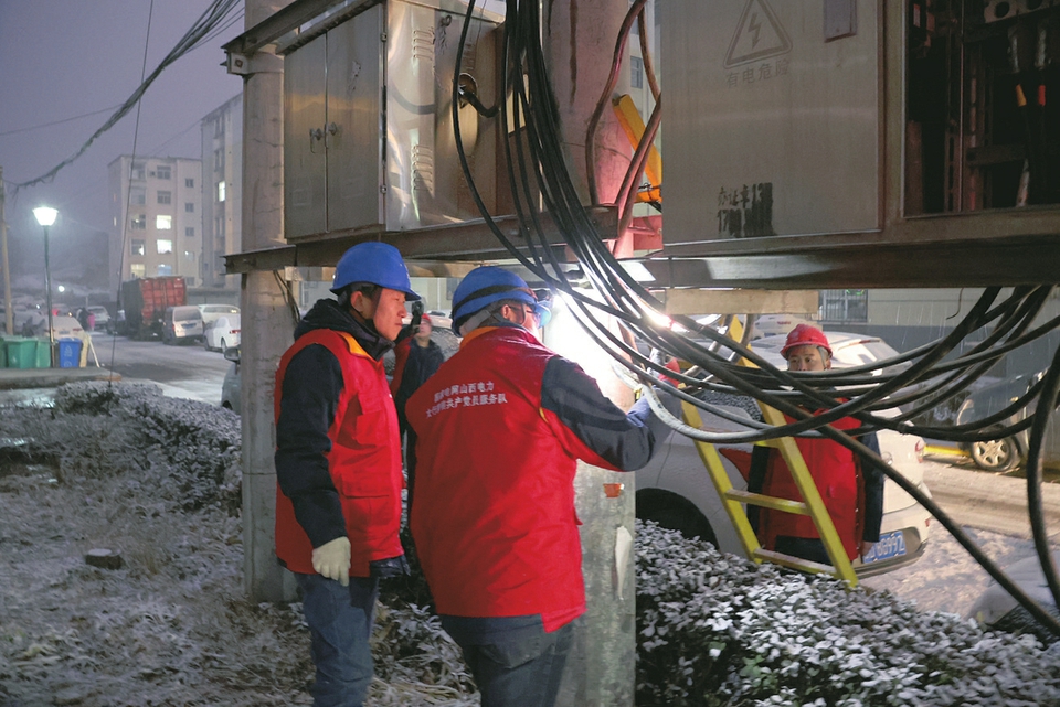 1月26日,國網(wǎng)山西電力(長治沁縣)太行黎明共產(chǎn)黨員服務隊工作人員正對供電線路和設(shè)備進行巡檢。張高峰 張玉林攝